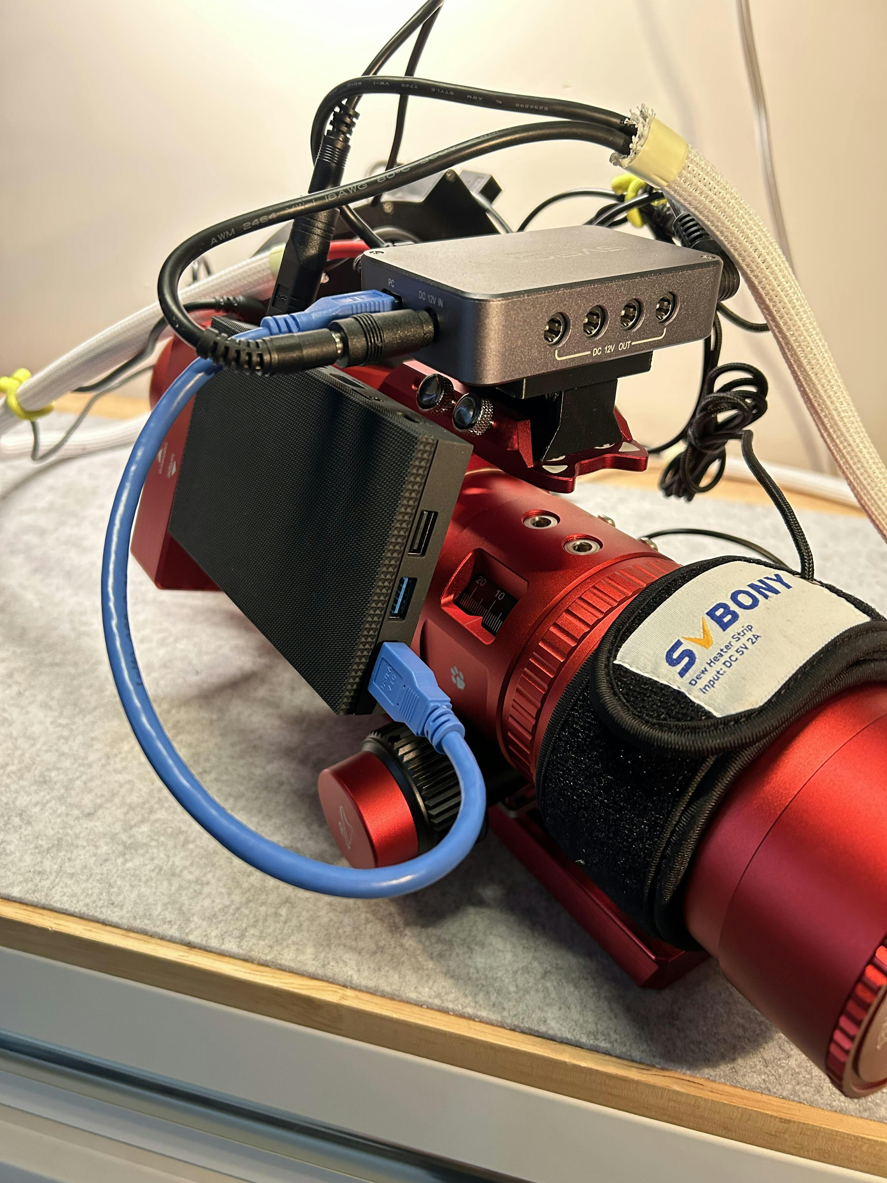 It secures to the underside of your MeLE Mini PC using the two threaded M3 holes spaced 80 mm apart. Once attached, the bracket slides into your telescope’s findershoe saddle.